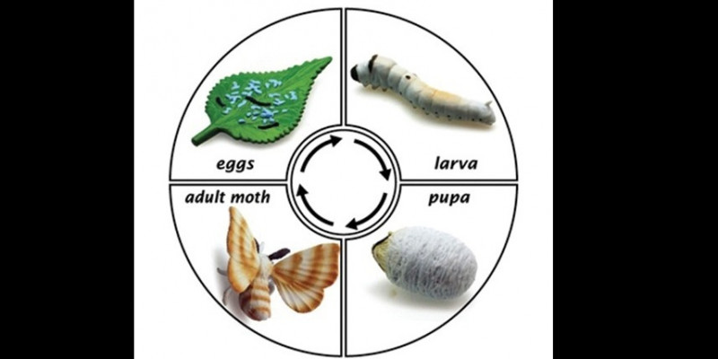 Gambar siklus Ulat sutra (Foto: https://ayoguruberbagi.kemdikbud.go.id)